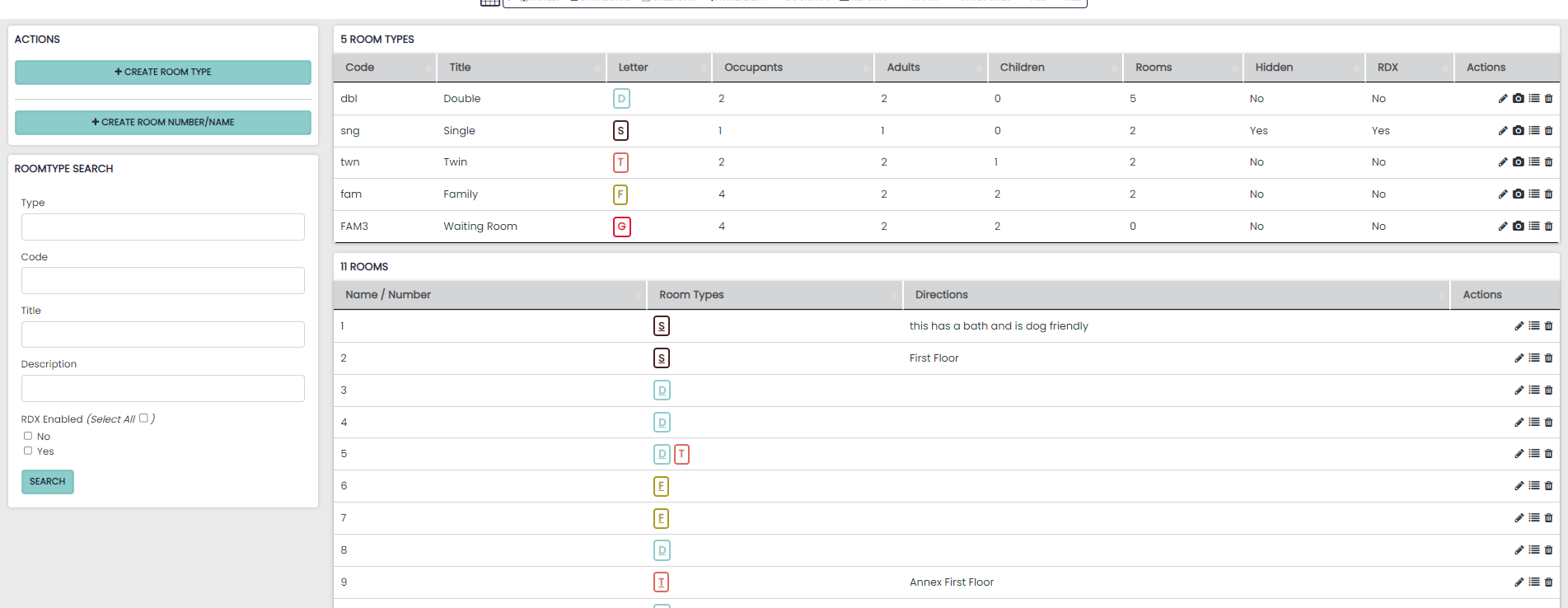 Here you can create new room types and physical rooms and view and manage your existing ones.