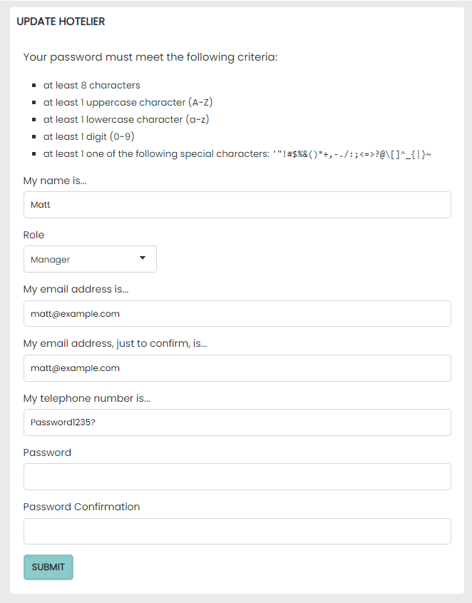 To edit a staff profile select the edit pencil within the actions column. Here you can edit any of the fields set above.