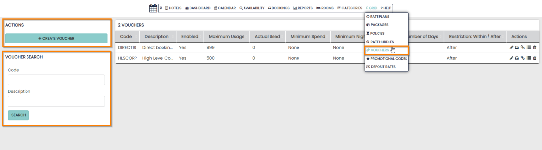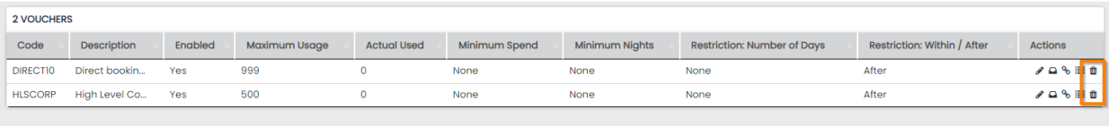 A voucher can be deleted after selecting ‘Vouchers’ from ‘Grid’ and selecting the bin on the voucher row within the ‘Actions’ column.