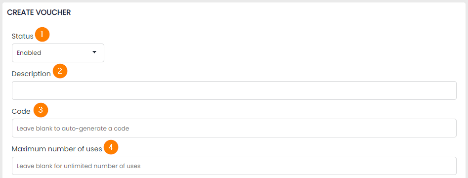 4 Max number of uses – once the number of bookings using this voucher reach this number, the voucher will no longer be valid. This field can be left blank if the voucher can have unlimited usage