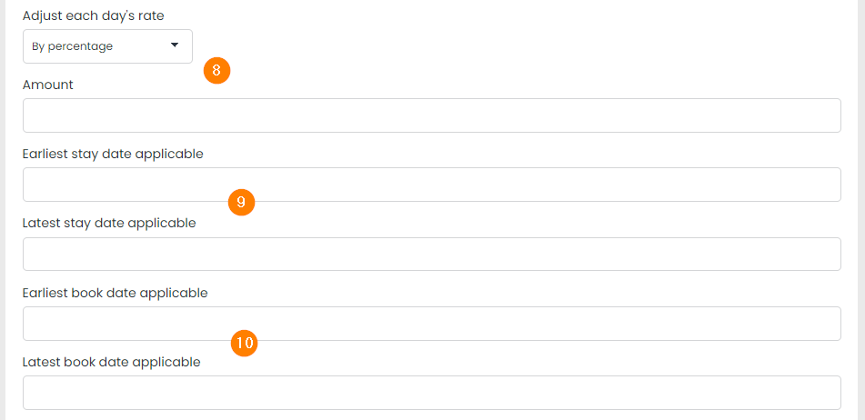 9 Earliest and latest stay date applicable – this is a YYYY-MM-DD format which restricts the voucher to only apply from, between or to the dates selected for when the stay can be booked.