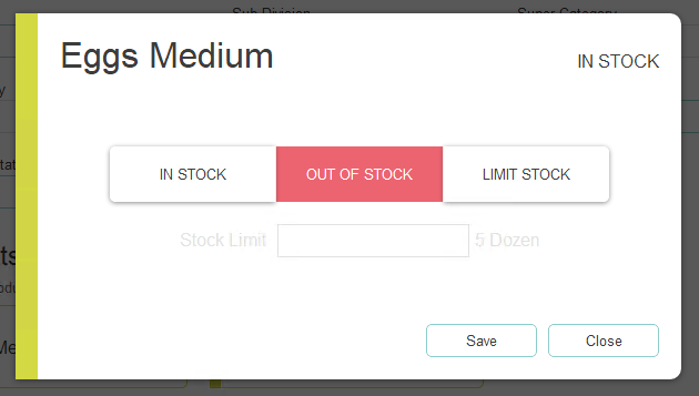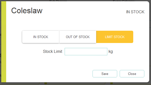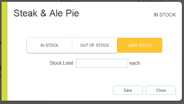 From the back office, you can manage items that are in or out of stock and set limited stock values for prep items, purchase lines, recipes and standard lines.
