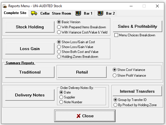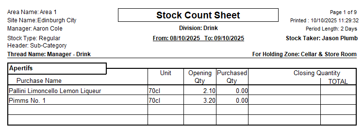 When counting stock by holding zone, the overall process is the same as a standard stock count. However, each zone is counted individually, and the closing counts for each zone are entered separately, providing a stock result per zone and for the complete site.