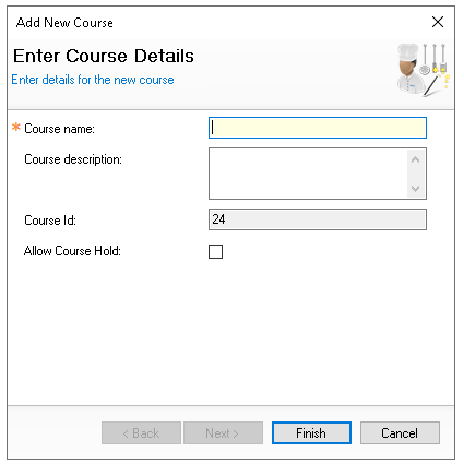 Courses are used to aid the preparation of items that are sent to dispense stations by displaying the course on printed materials or kitchen / service screens.