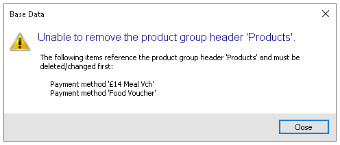 Product groups are used alongside special payment methods in finance to ensure that payments apply only to selected items within a specific group. For example, a £10.00 voucher might be restricted to food items only, excluding any non-food items from the payment. This section allows you to create and manage these product groups.