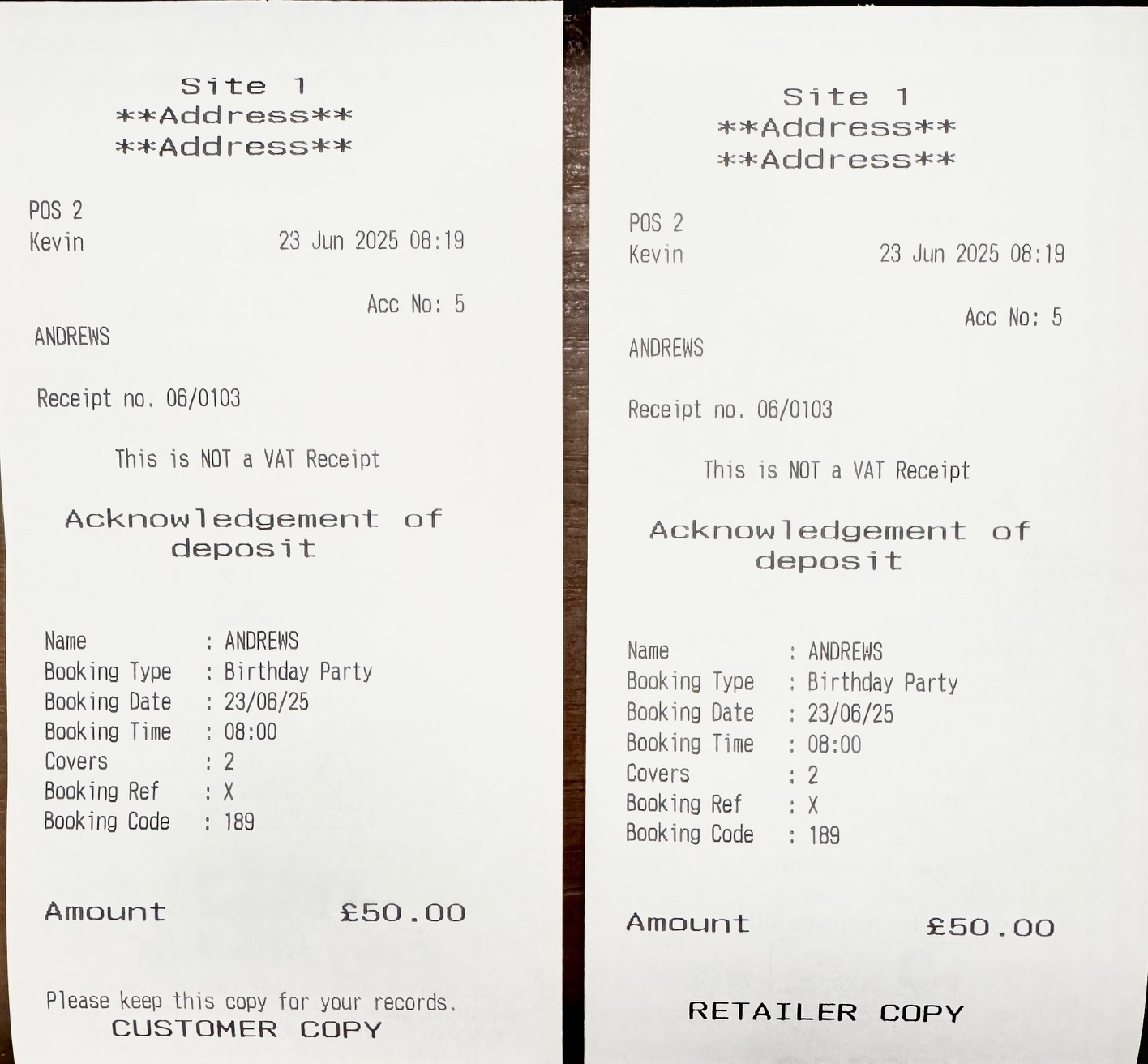 Automatically two copies of the 'Acknowledgement of Deposit' will print