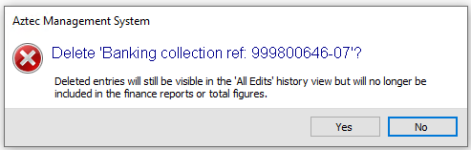 An entry can only be deleted if the back of house operator has permission configured against their job role to edit banking collections