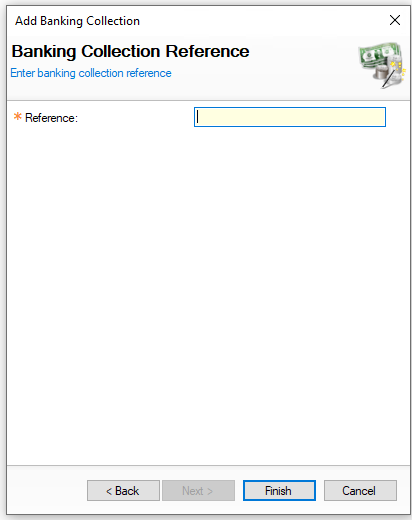 | Click Add Banking Collection | Select Bankings | Click Next | → | Enter the Reference | Click Finish | |||