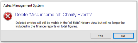 A entry can only be edited if the back of house operator has permission configured against their job role to delete misc income