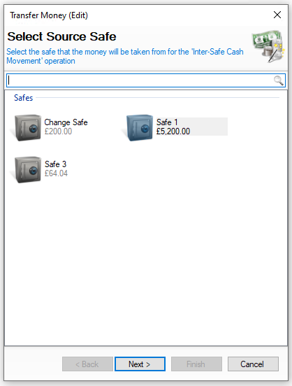 Select the Safe (from which the money is being transfered to) → click Next