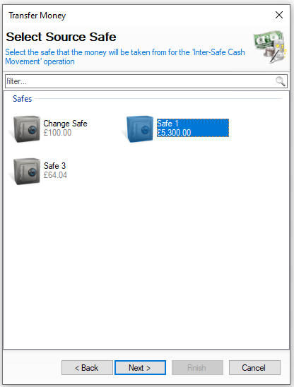 When multiple safes are set up, the safe transfer function allows money to be moved between them as needed for operational or procedural purposes.