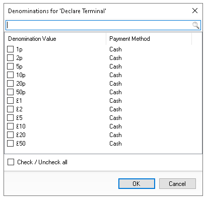 During onsite finance activities where cash is being reconciled, denominations can be used in place of the cash payment method. This makes it easier to count and manage funds, and denominations can be set up individually for each function.