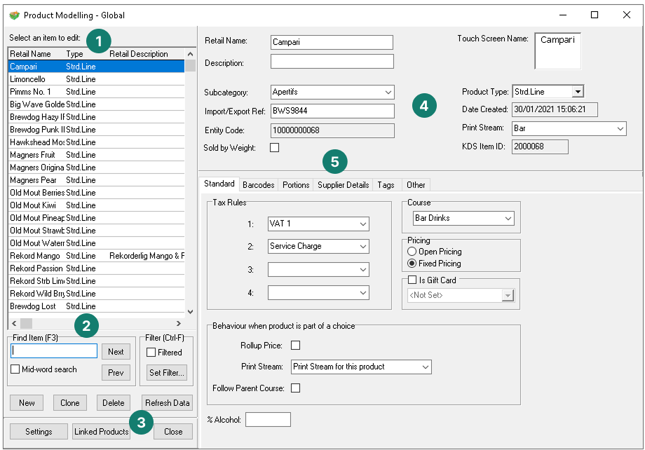 Example: Searching for 'Espresso' will return products that begin with that word. To find items like 'Dble Espresso', search using a mid-word -
