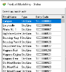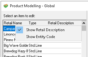 The product list is displayed by default with Retail Name | Type | Description, this can be changed to change the description to Entity Code.