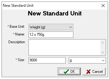 In this example the chocolate chips are counted in 750g bags but are purchased in boxes of 12 x 750g bags