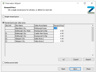 If prices are not yet available to be configured selecting 'Define Prices Later' will allow the promotion setup to be completed, the status of the promotion in the promotion list will be shown as Unpriced -