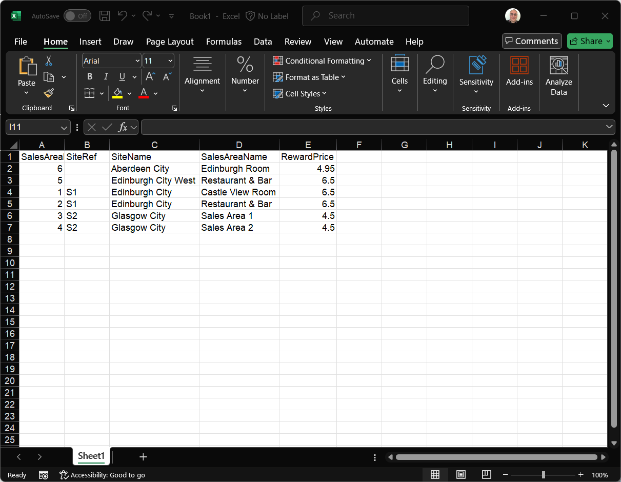Care should be taken not to change any data in the columns A-D as this information is needed when re-importing back to promotions, any changes could cause the import to fail -