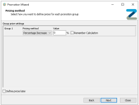 Percentage Increase / Decrease - when selected prices will be automatically calculated by the percentage value entered
