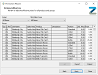 The exported data will include all groups, sites, sales areas and products added to the promotion -