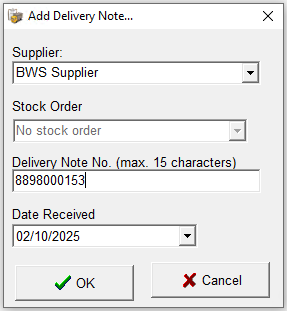 When proceeding to the delivery note the products on the stock order will be automatically added, the quantities can be updated, additional items add or deleted as required -