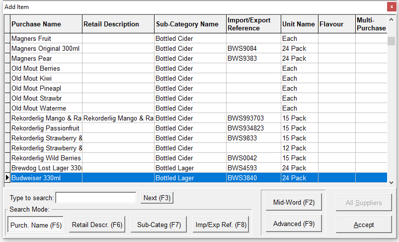 On the selected product click Accept or press <Enter> to add the item to the delivery