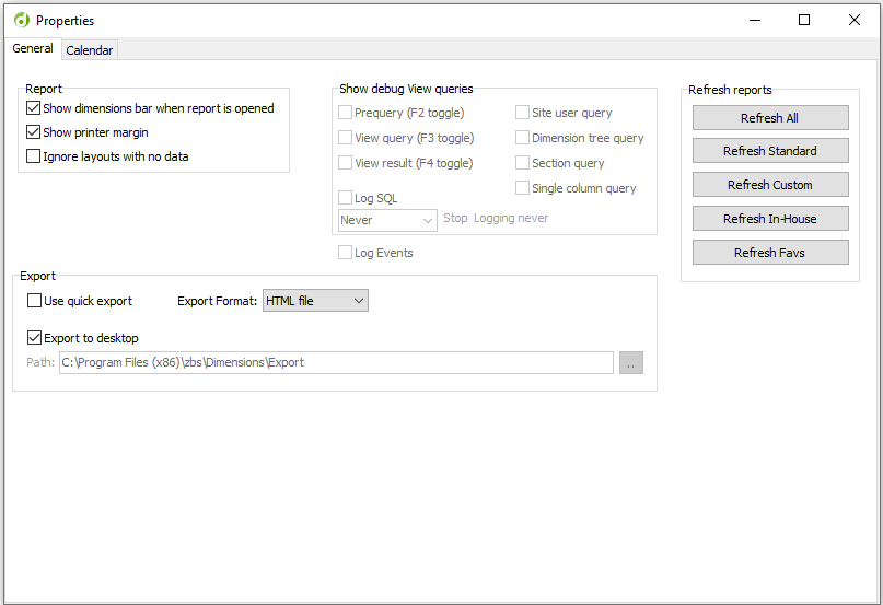 Path - defaults to C:\Program Files (x86)\zbs\Dimensions\Export but can be changed as required