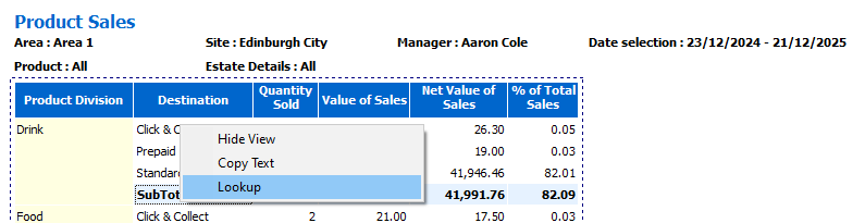 Click Apply | the report will update and only show the results based on the lookup filters applied