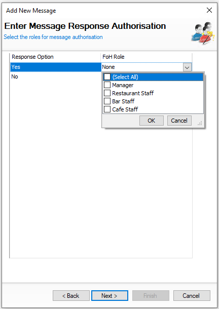 From the drop down select the required front of house roles that can authorise either Yes or No