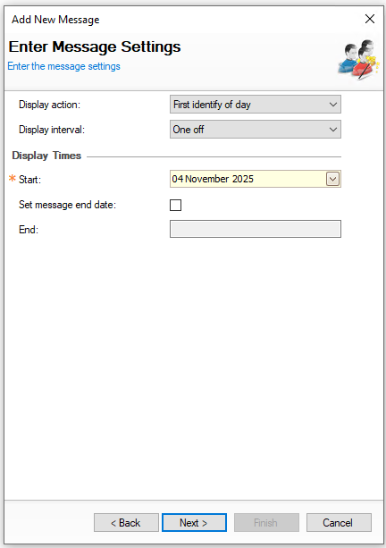 Display Action - set when the message is displayed on the point of sale