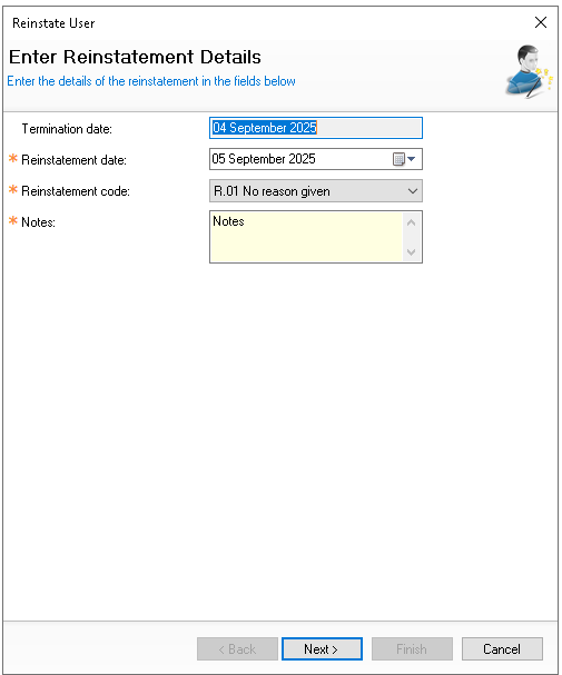 When a user has been terminated it is possible to reinstate them either to correct a mistake or where someone has returned to the business.