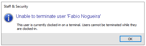 Confirm the Terminate User option by selecting Yes