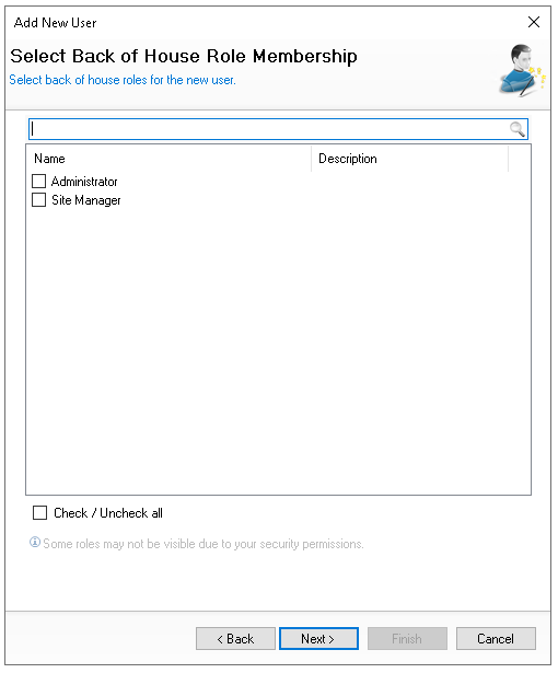 Select the required Back of House Roles