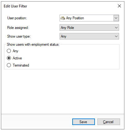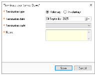 Select Employment Status Terminated | make a other selections as required | click Save