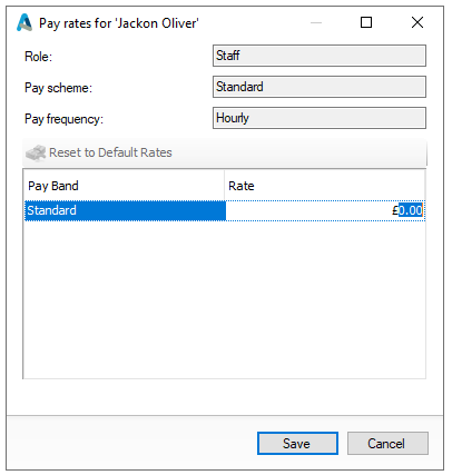 Change the Pay Rate if roles are configured for site overrides | click Pay Rates and set as required