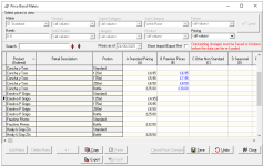 As an alternative to managing price changes directly within the price matrix, the data can be exported to a spread sheet, adjusted as needed, and then re-imported into the system.