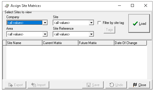 The site matrix links each site to its corresponding price matrix. Depending on the organisation’s requirements, there may be only one matrix in use, in which case no updates are needed in this section.