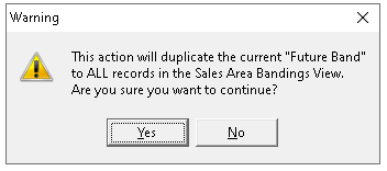 Each subcategory can be manually assigned, alternatively with a row selected click Copy | confirm to copy the same future band and date to all rows displayed by clicking Yes