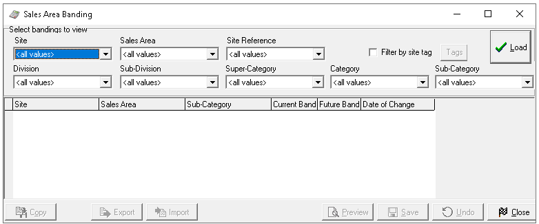 Load the Sales Area Banding with sites, sales areas and subcategories including those that were selected in the original export