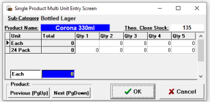 Clicking Multi Unit will enable multiple count entries to be added, if there are different purchase unit sizes (vs stock unit) these can be also entered