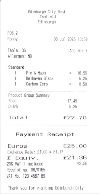 This function is used in conjunction with another solution, where a receipt is scanned to register a sale based on the total account value, with payment taken separately |