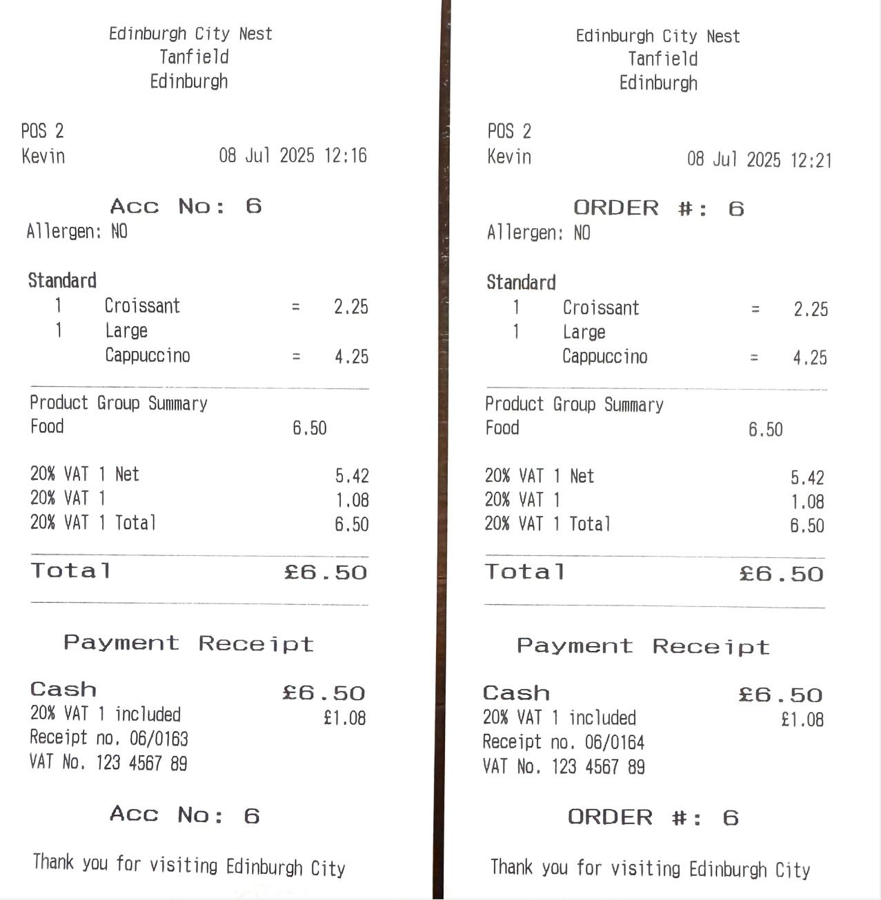 When enabled this setting will print the account or order number in larger font at the top and bottom of bills / receipts |