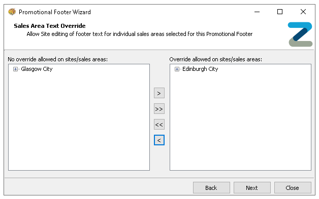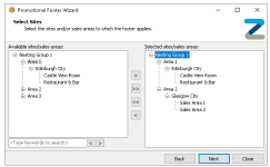 Select the required Sites and Sales Areas from the Estate Structure which will apply to the footer