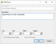 By default the panel is only 6 x 6 and has two rows of reserved lines for text that is displayed during POS operations, the panel can be made bigger by selecting the 'Speech Bubble / Question Mark' icon and adjusting the Top, Left, Width and Height values.