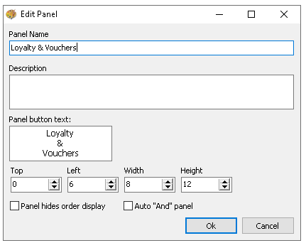 Panel Hides Order Display - when selected the order display will be hidden, this is only ever used when a local panel covers the full 12" or 15" display on the terminal