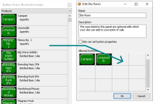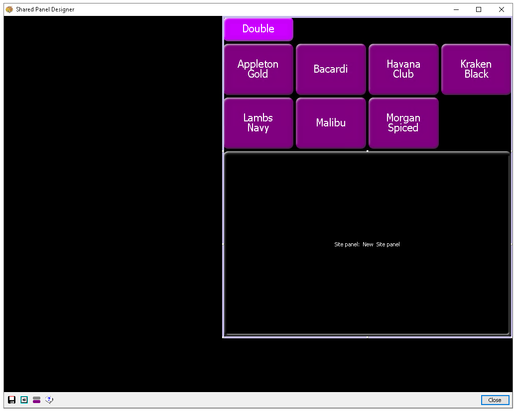 The size of the site panel will determine the amount of space onsite they have when adding products to this panel, the initial size is 1 x 1 button meaning only 1 button could be addedIn this example the site panel has been resized to fill the bottom section of this shared panel -