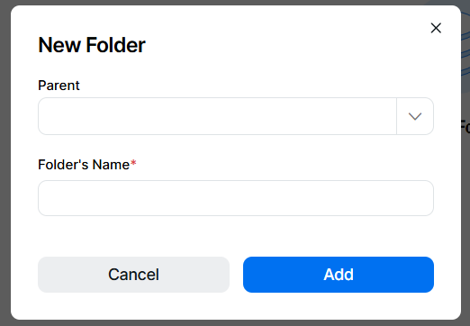 From the browser section click Add | the Parent folder drop down will be empty, if this is a new top level folder leave this blank