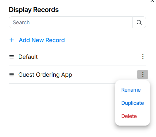 Duplicate will copy all fields from the selected display record -