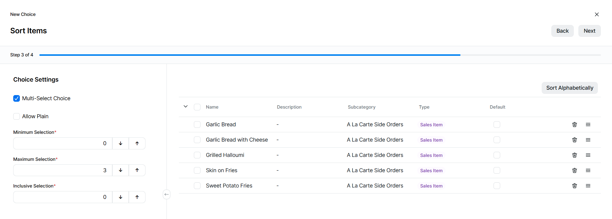If you wish to sort the choice options follow these steps or go to Step 4 of 4: