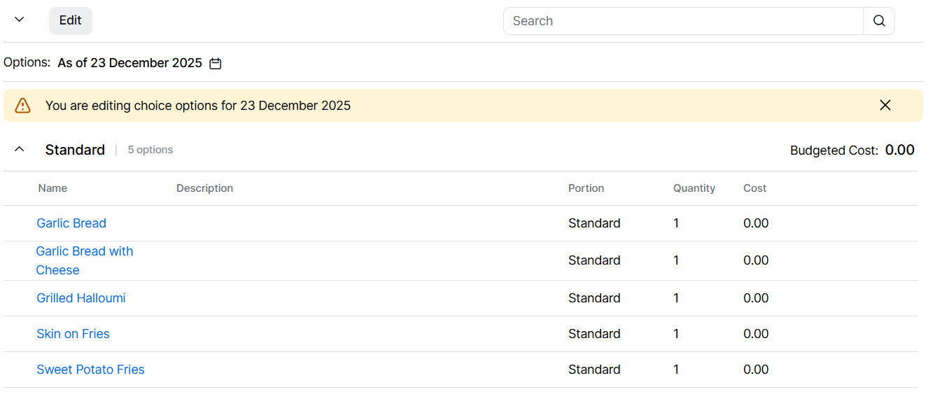 Removing any future dated options will also remove any configured ingredients or cook times for the selected date