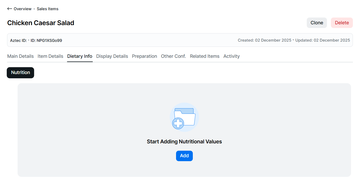 Follow these steps to add nutritional information: